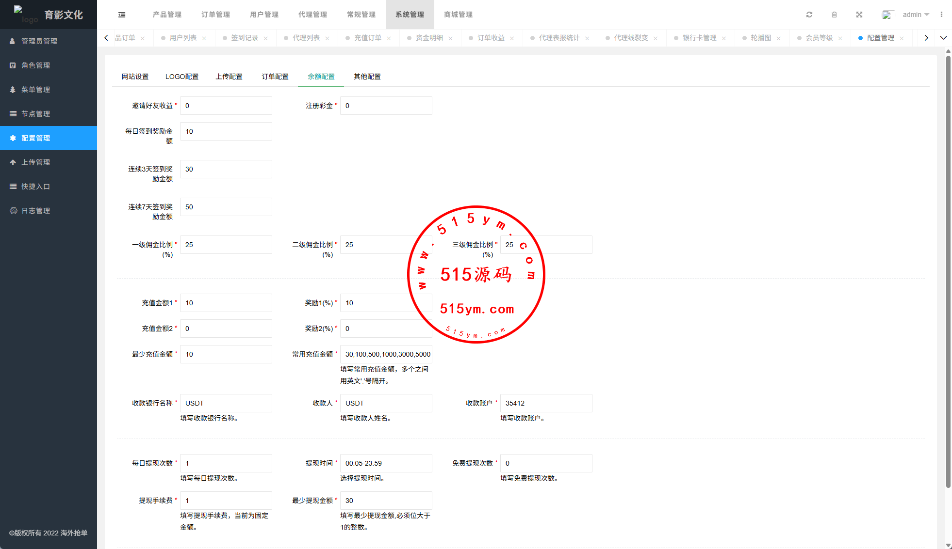 系统功能:抢单开关、预设订单、重置订单、签到、代理等功能