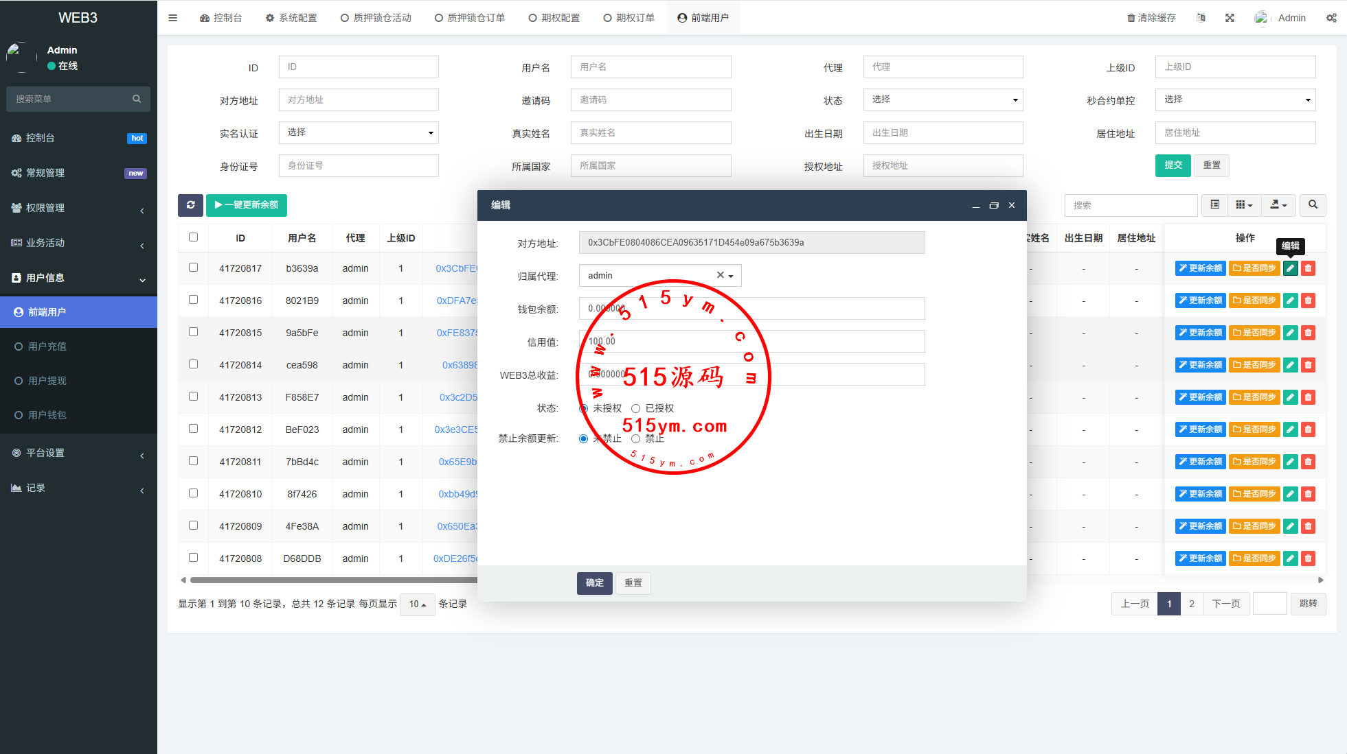 UI重新定制二开,前端VUE开发,后端php的FastAdmin框架前端多语言,支持期权交易,质押,信用分等功能系统支持E链支持授权,源码全开源带源码
