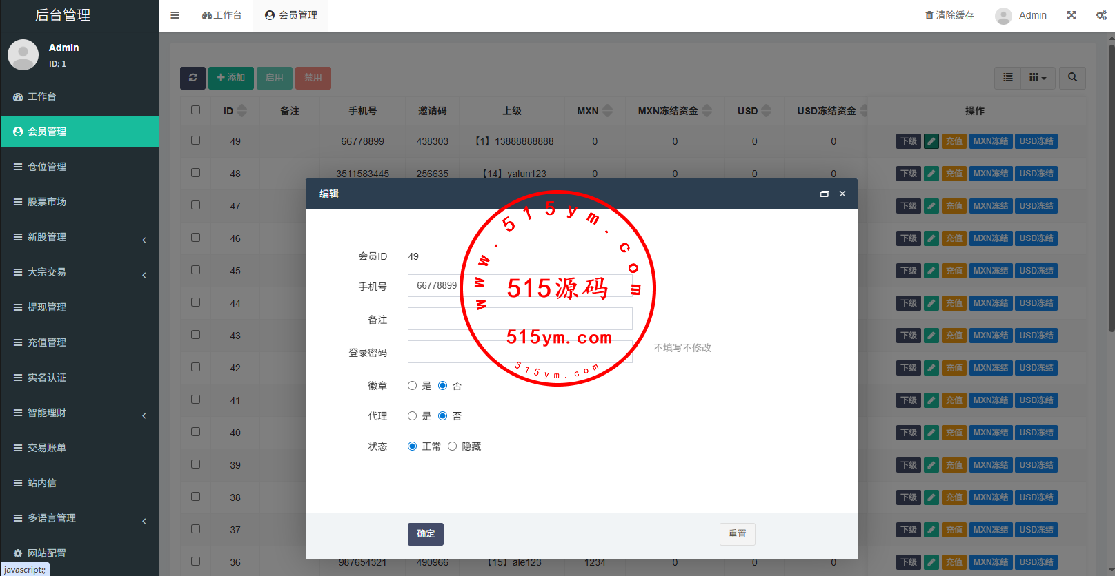支持代理后台,usdt充值,大宗交易,新股认购,产品理财等功能